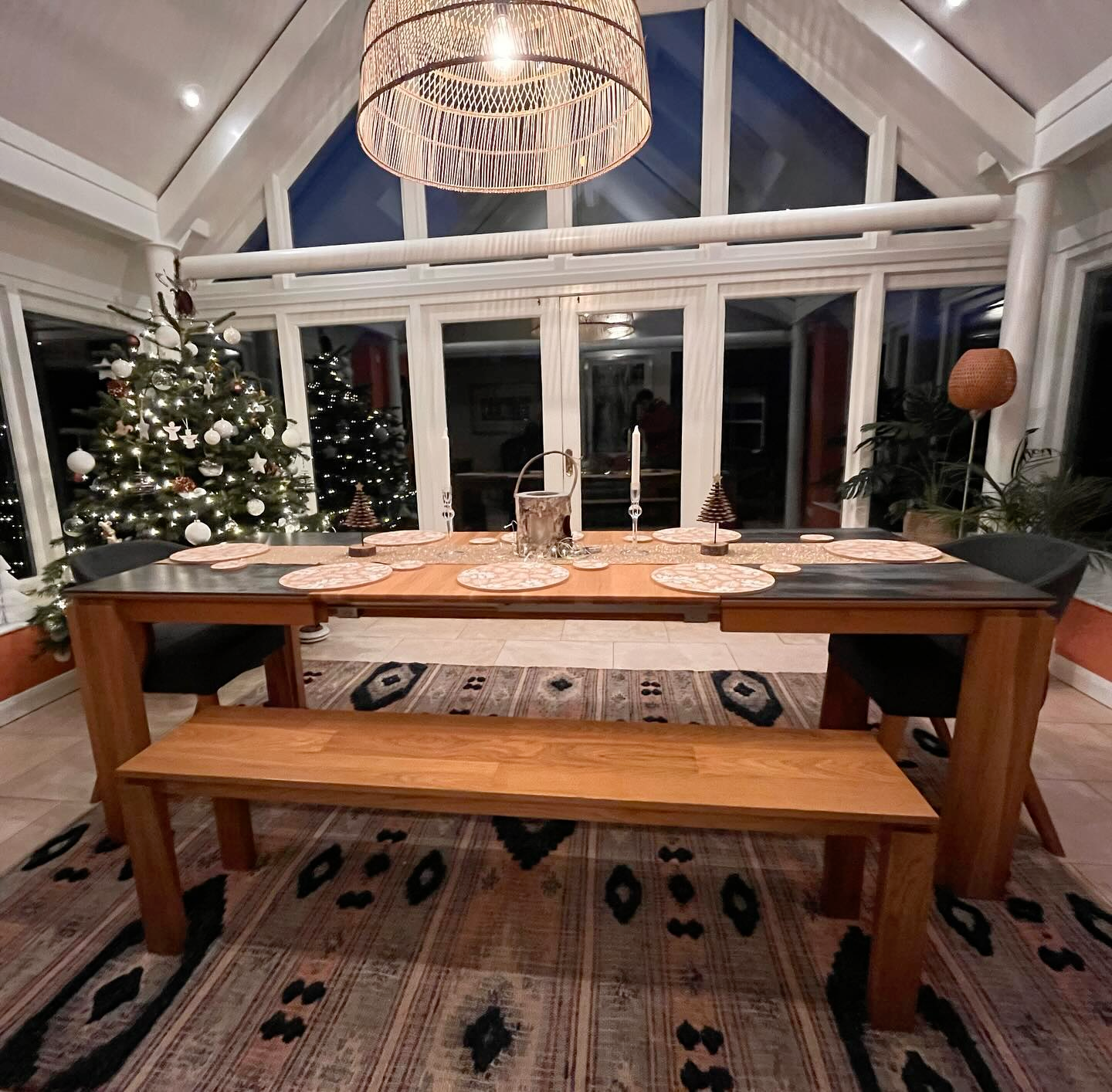 Solid Oak Dining Bench, bespoke & made to match the finish & detailing of a clients existing Dining Table Finished in Osmo Honey Oil